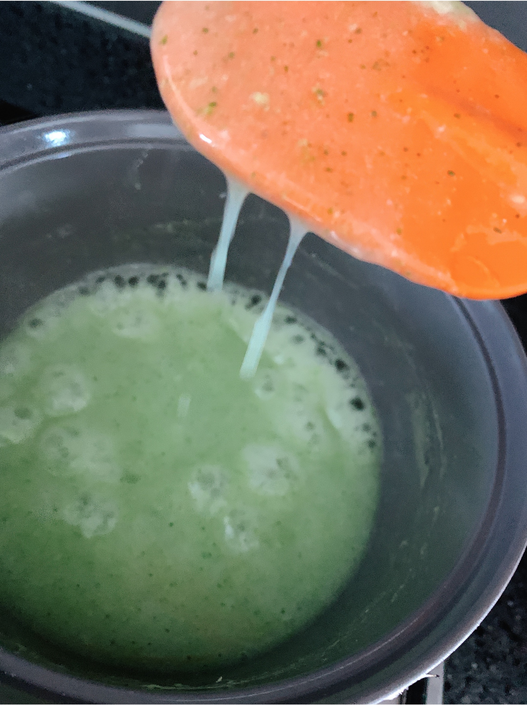 갈아둔 브로콜리를 같이 끓여준다