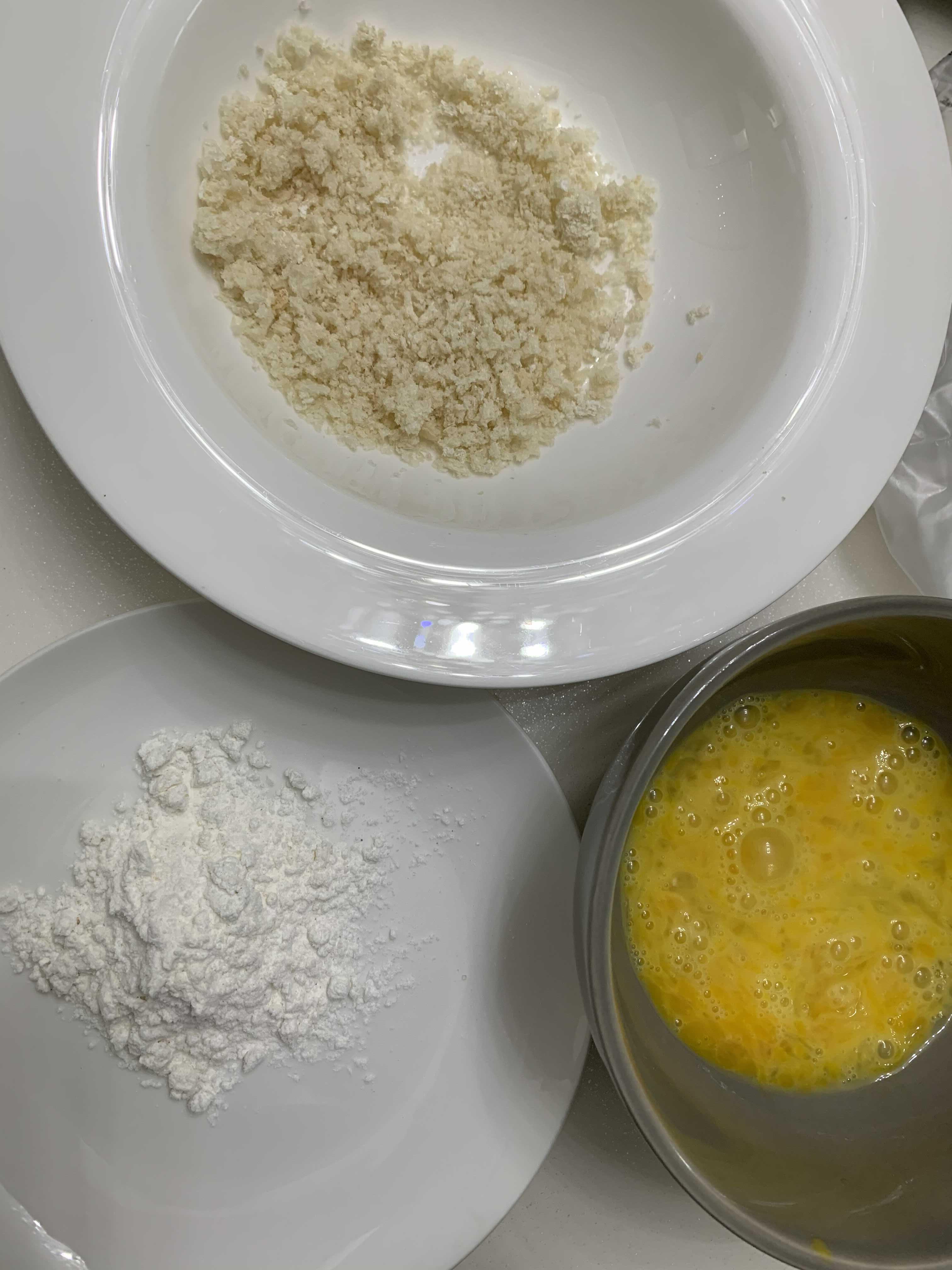 밀가루, 빵가루, 계란(풀어서) 준비해놓는다