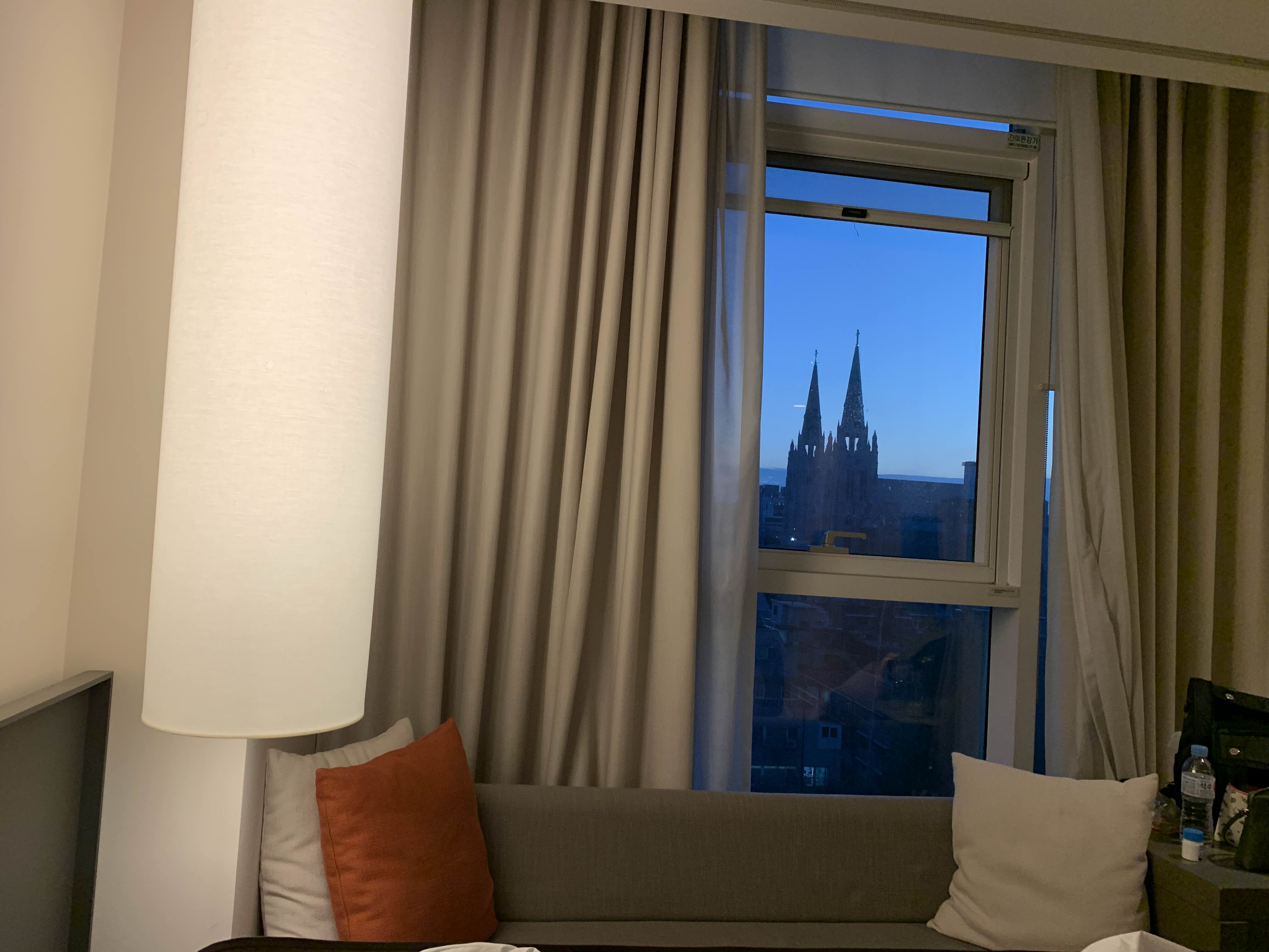 그 교회뷰가 밤까지도 운치있었다