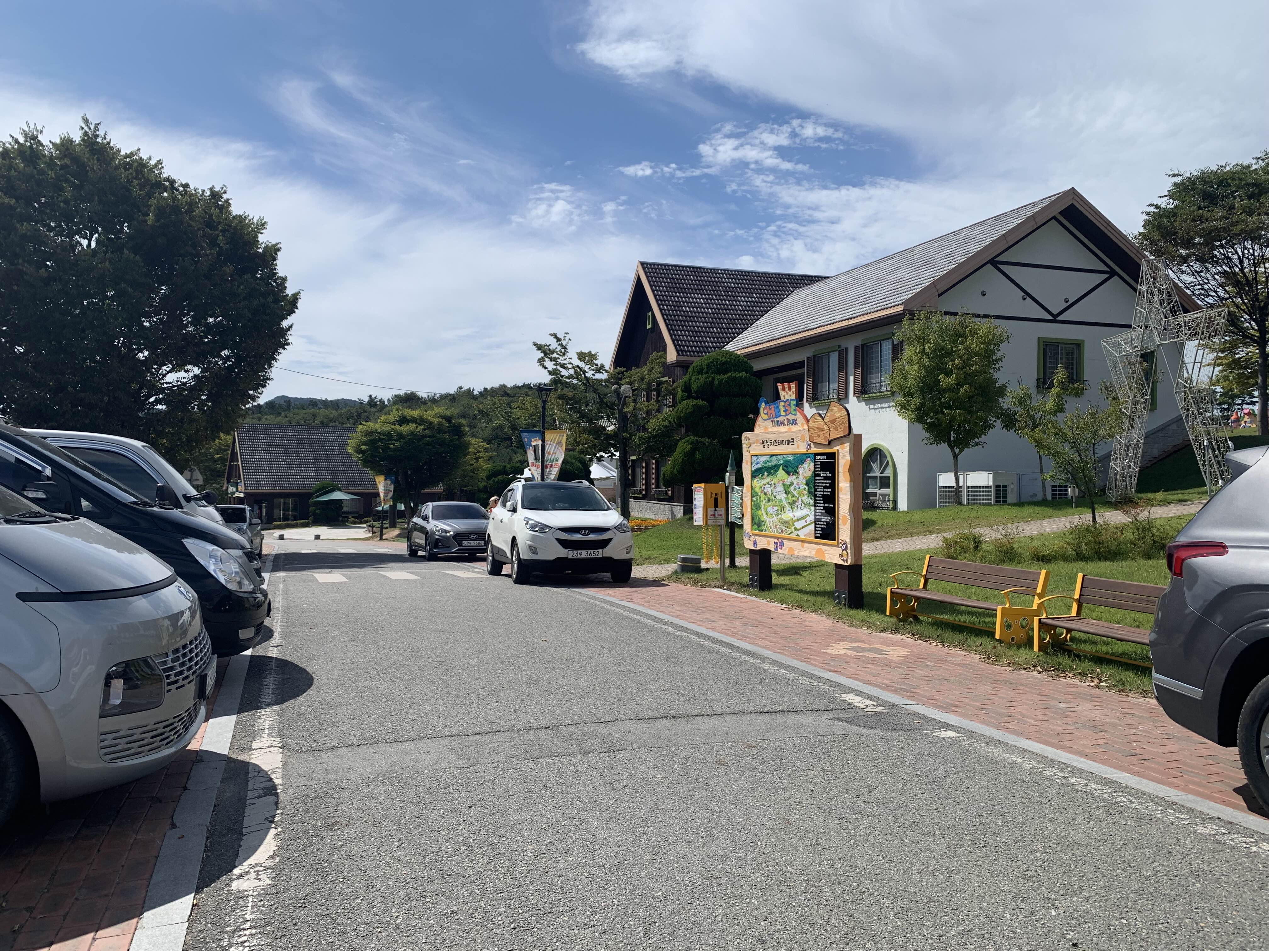 주차장에 주차를 하고 테마파크를 보니