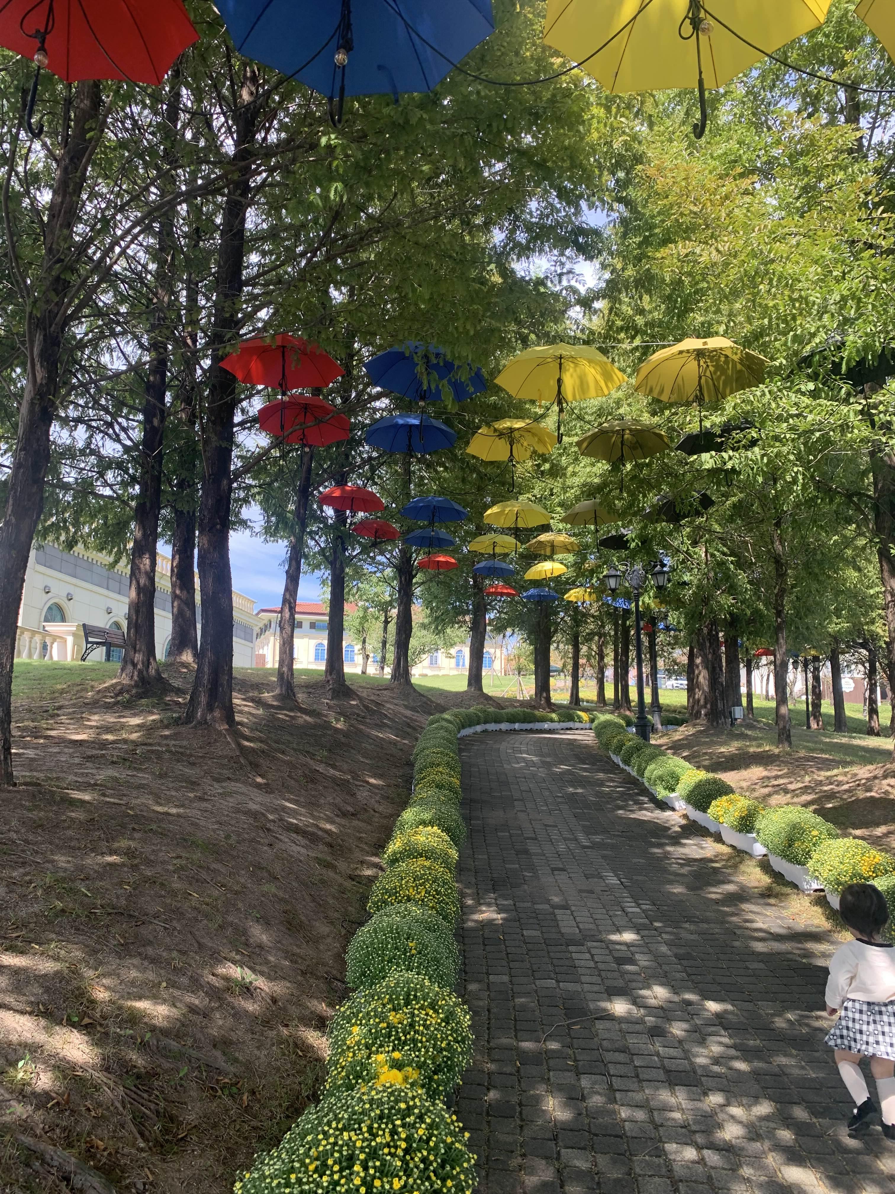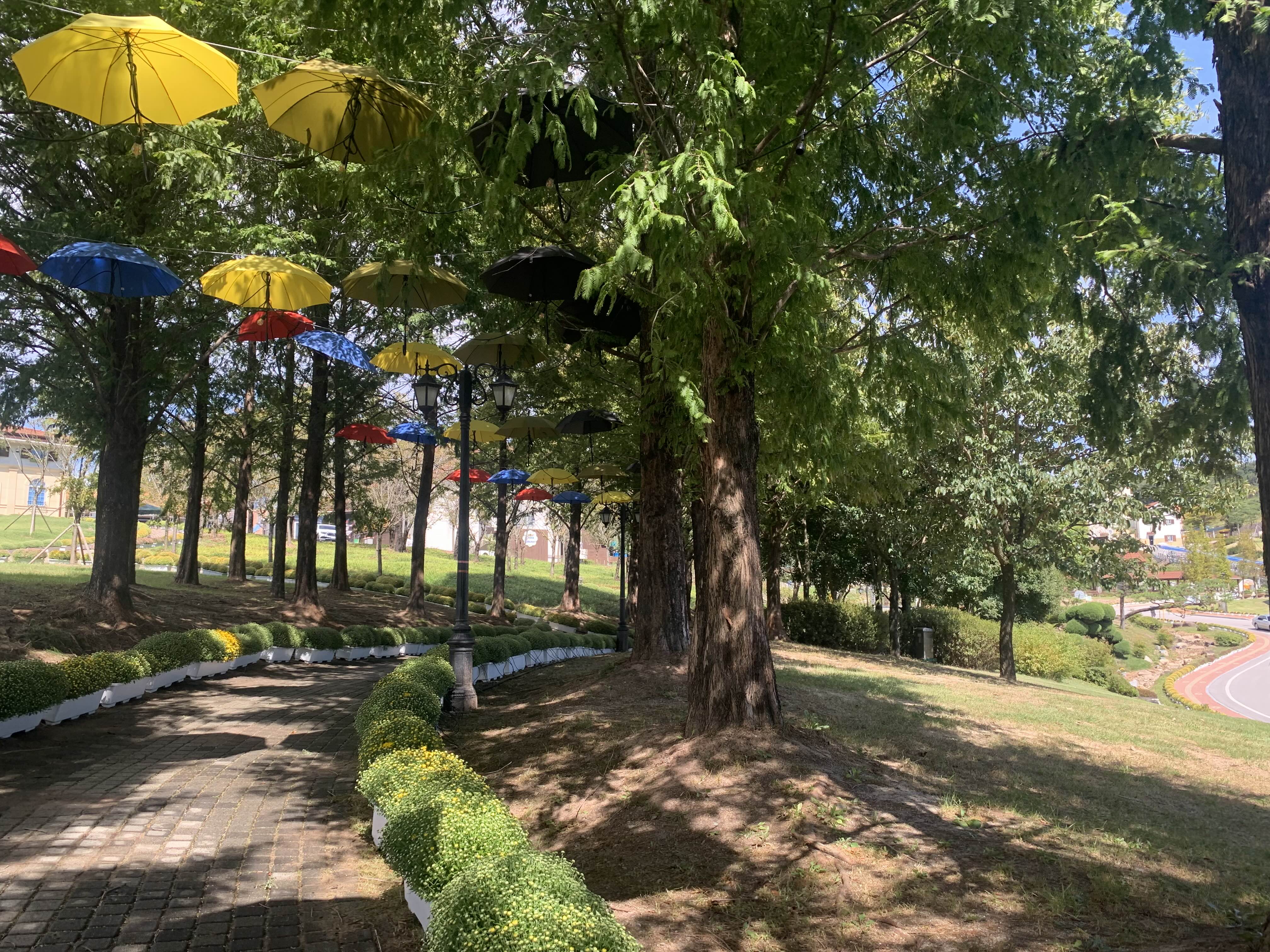 알록달록 우산으로 꾸며진 길에