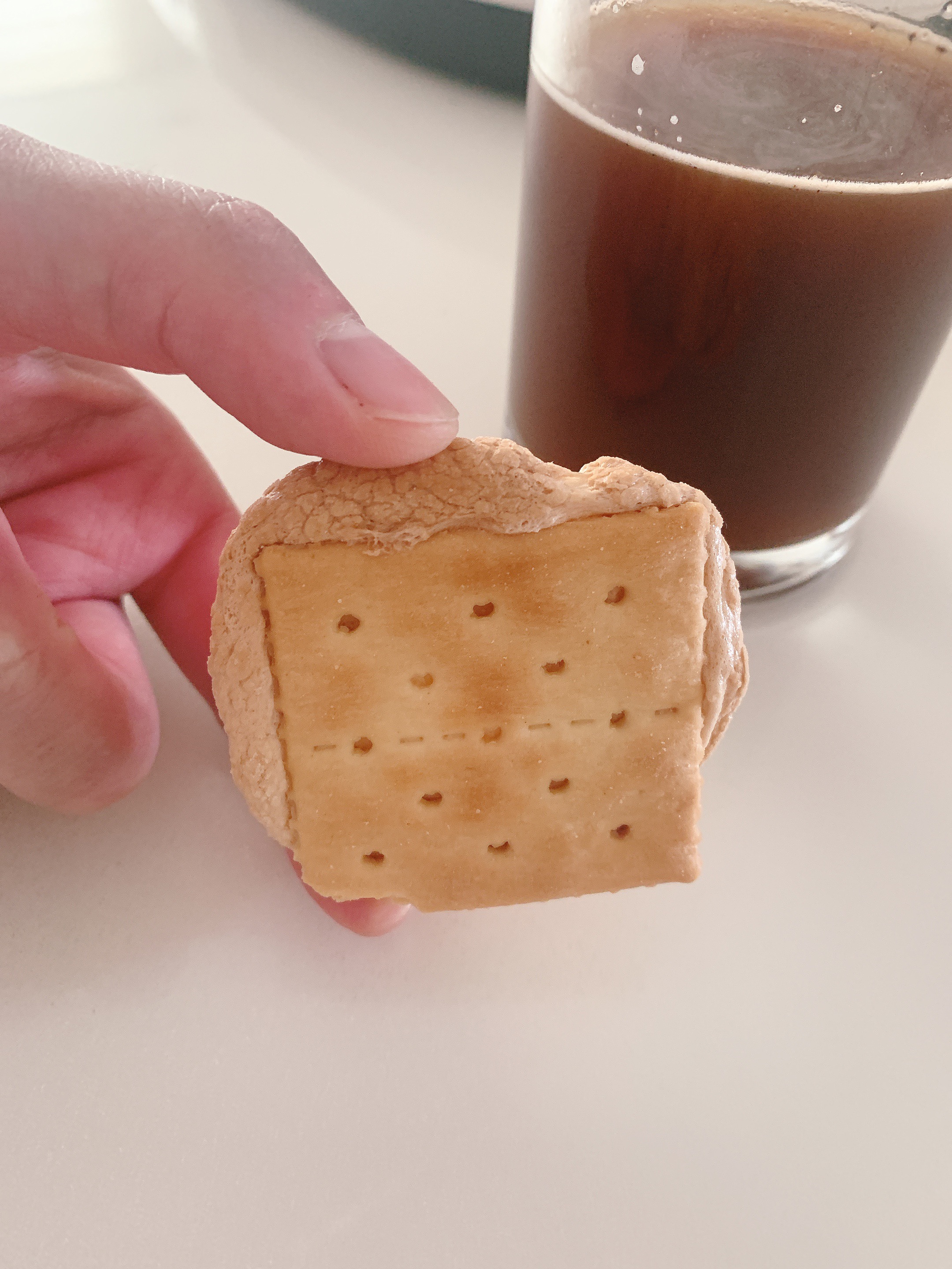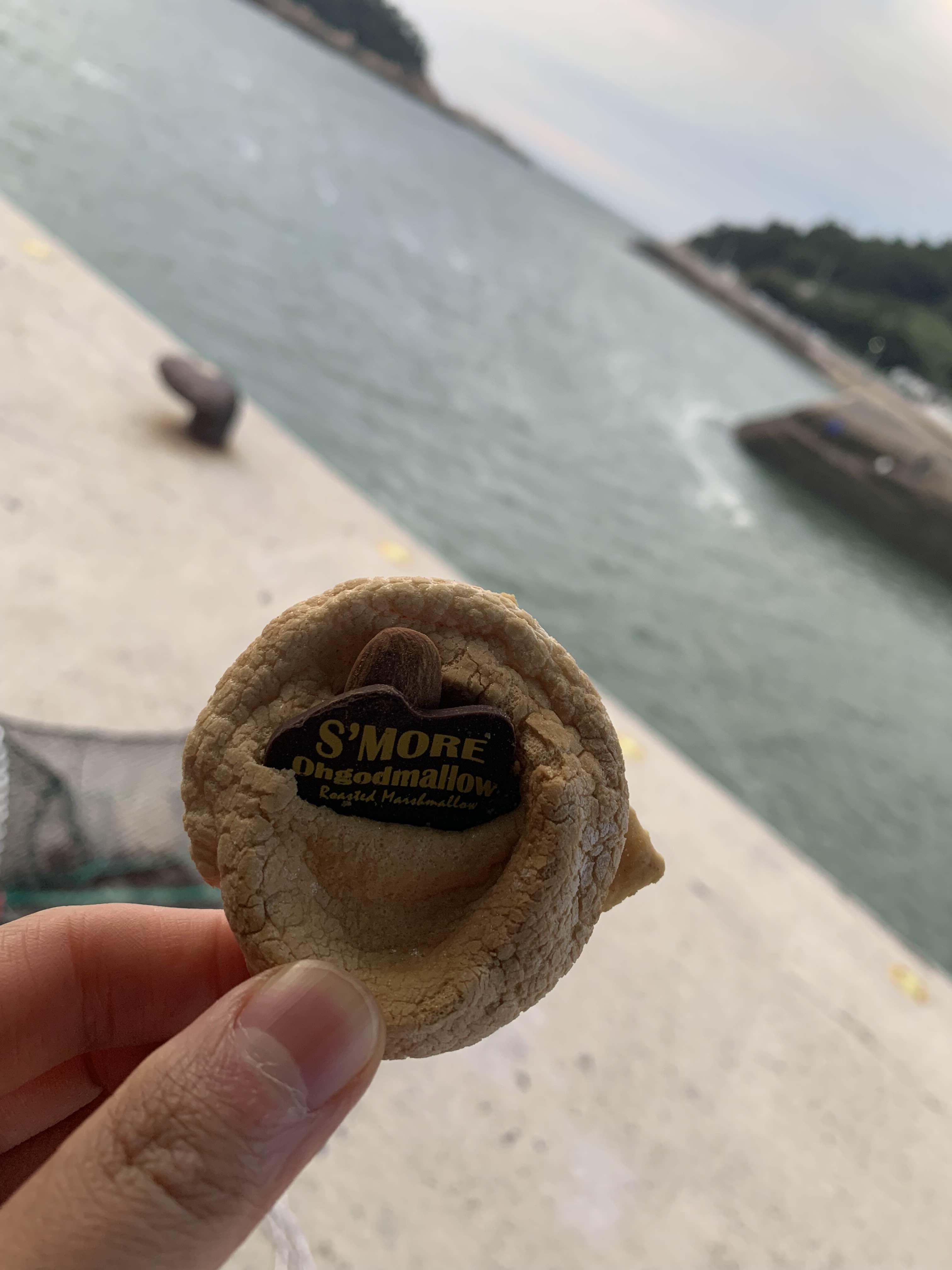 담백한 크래커에 로스티드한 마시멜로가 얹어져 있는데