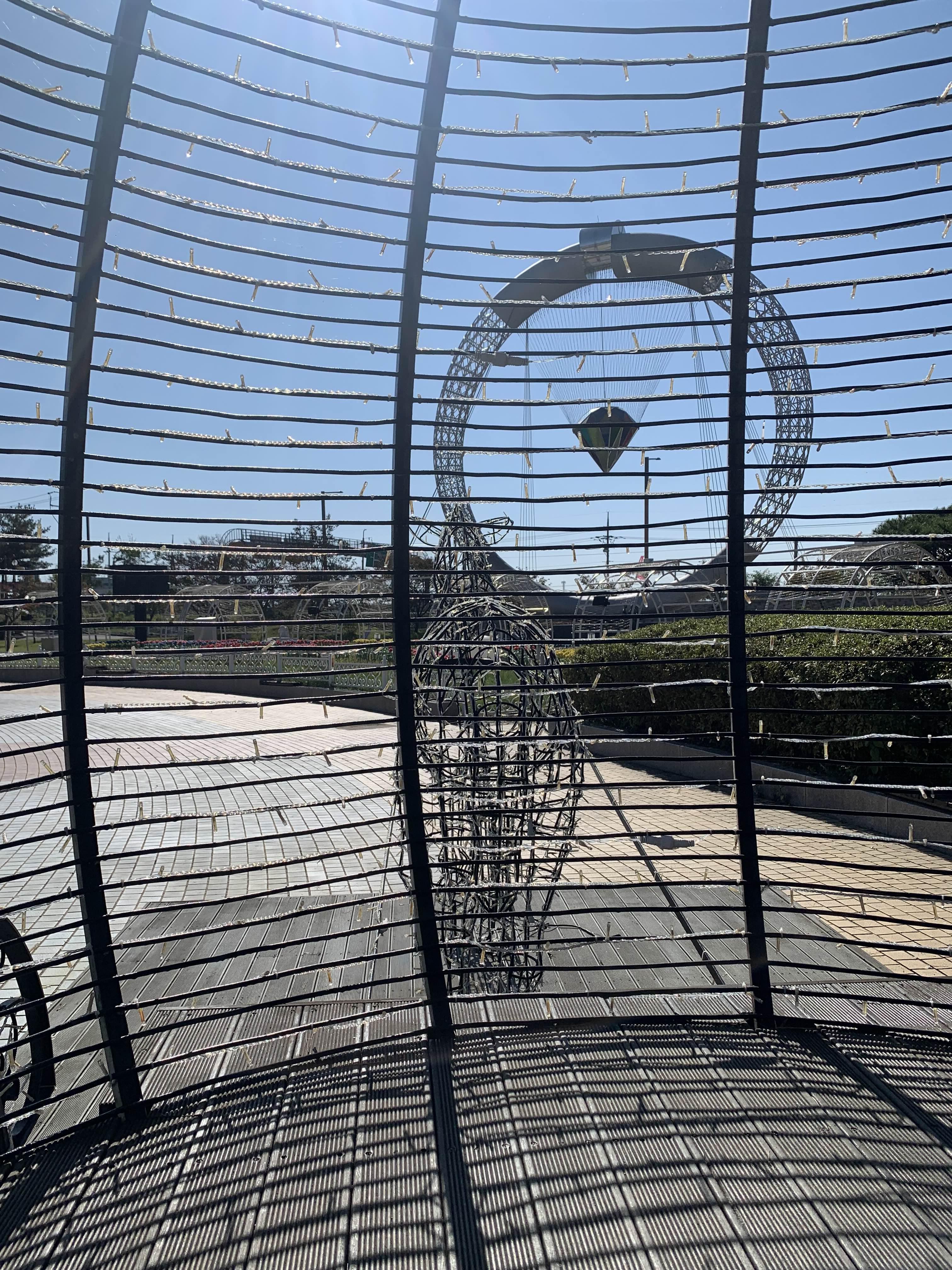 철근과 전등으로 장식되어 있는