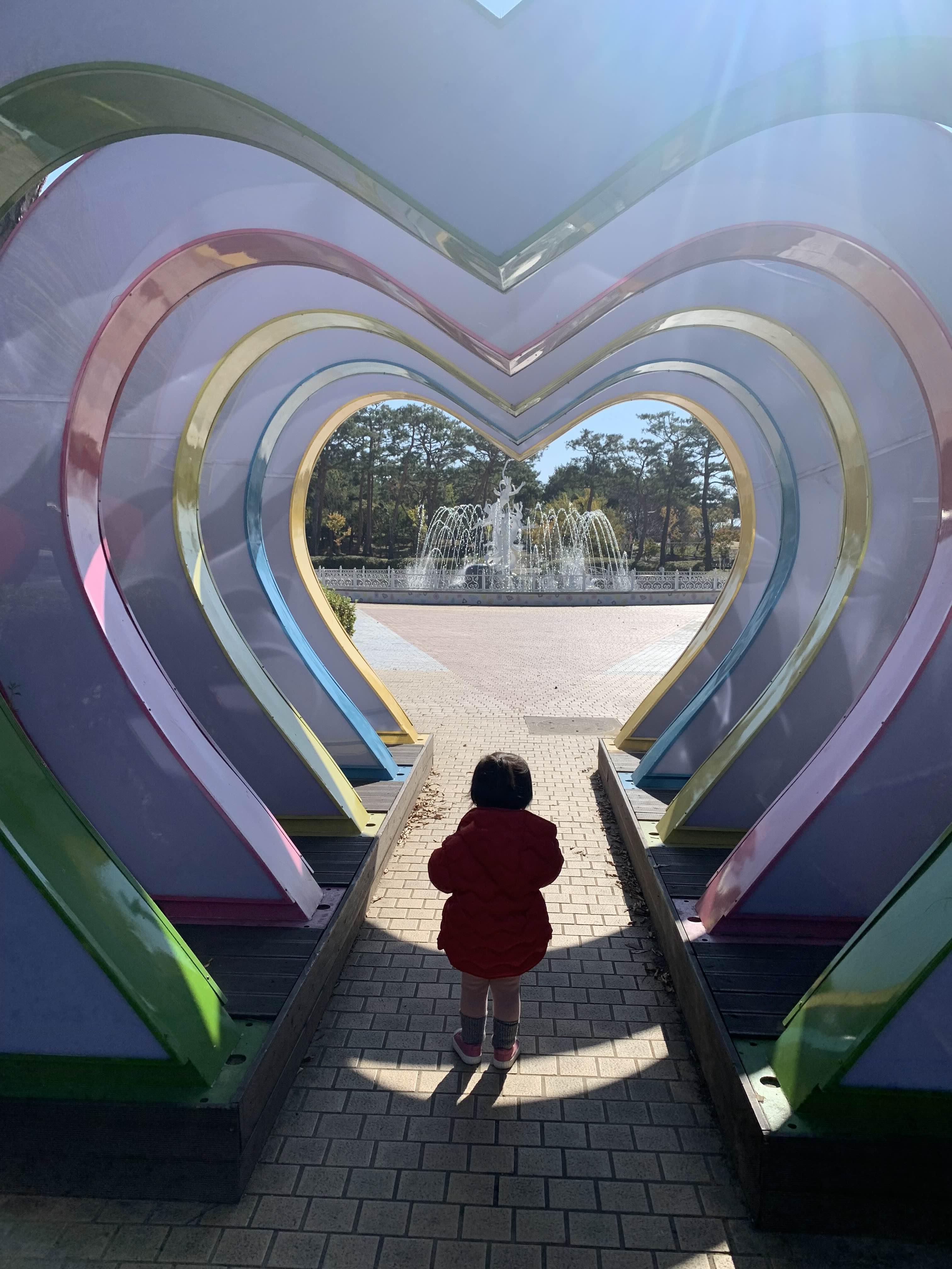 하트로 되어있는 터널 같은 곳에서