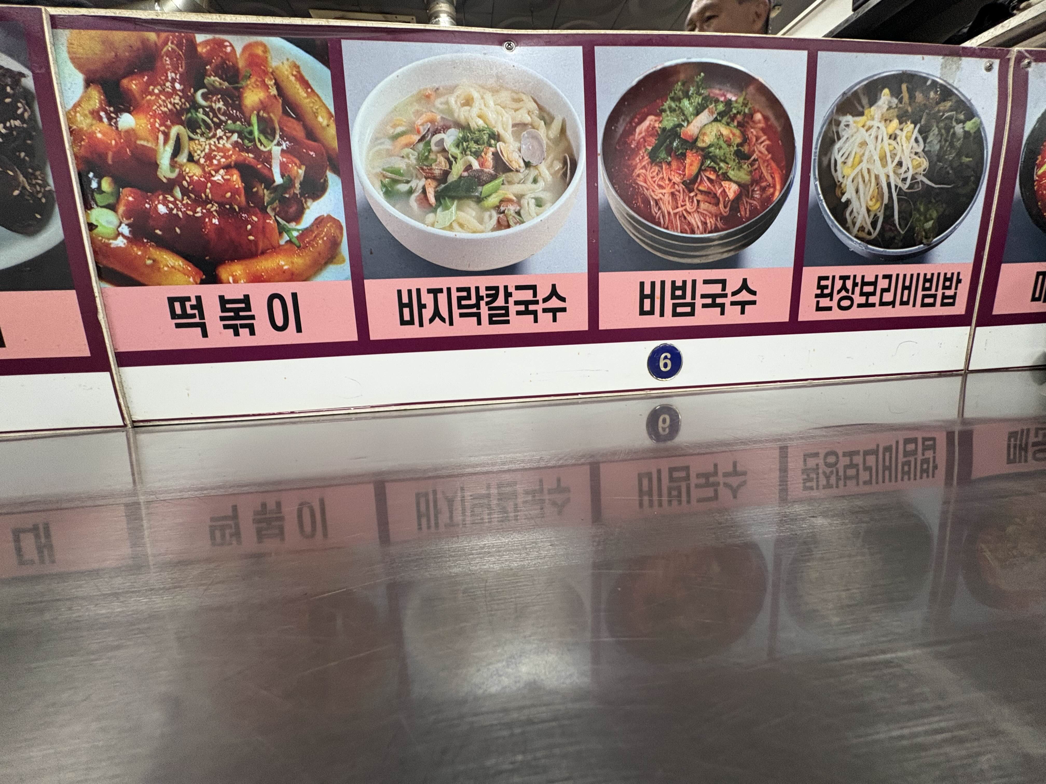떡볶이, 김밥 2줄, 바지락칼국수2인분, 팥칼국수를