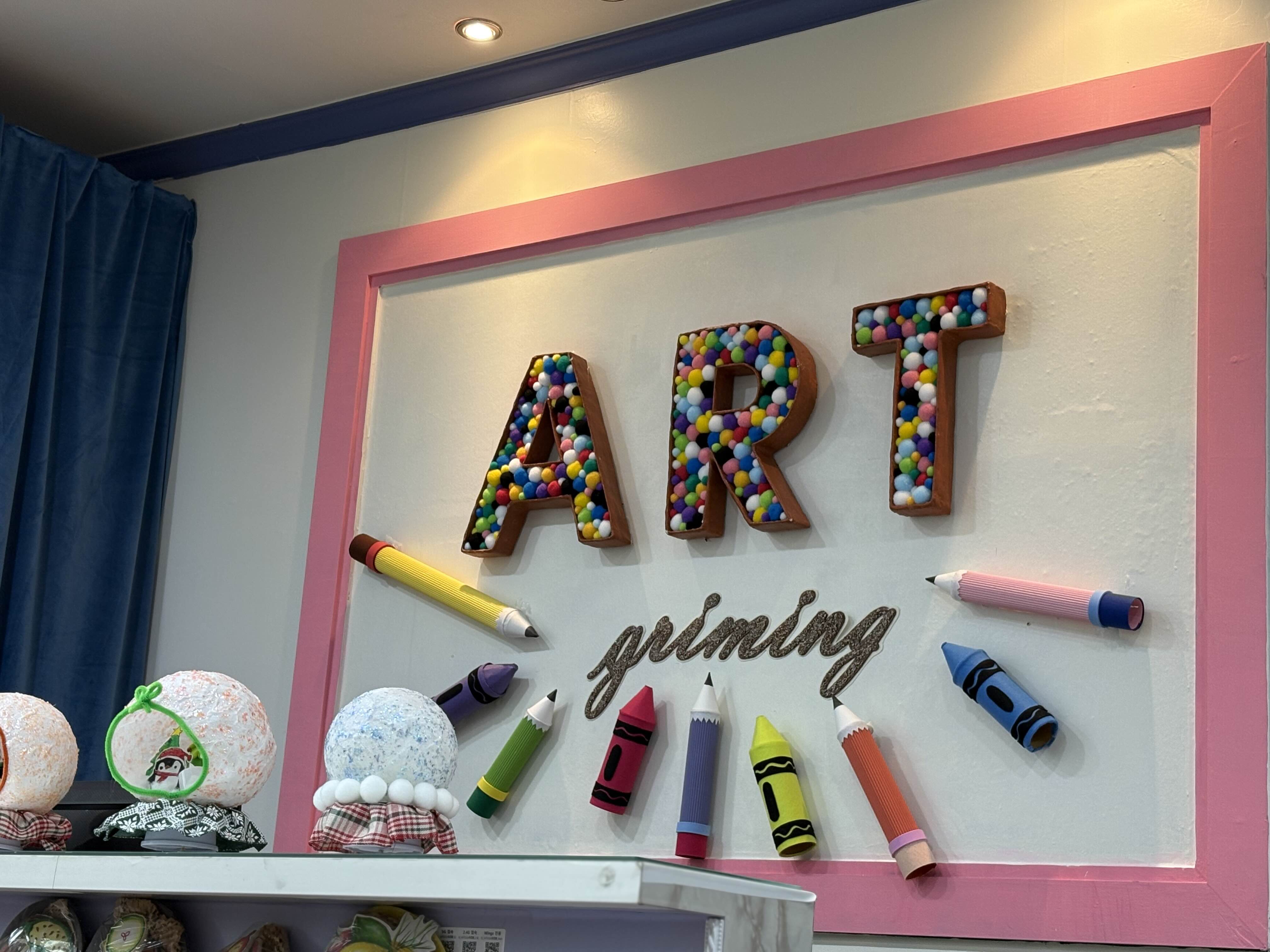 아이들이 만든 작품들이 걸려있는 이 벽면!