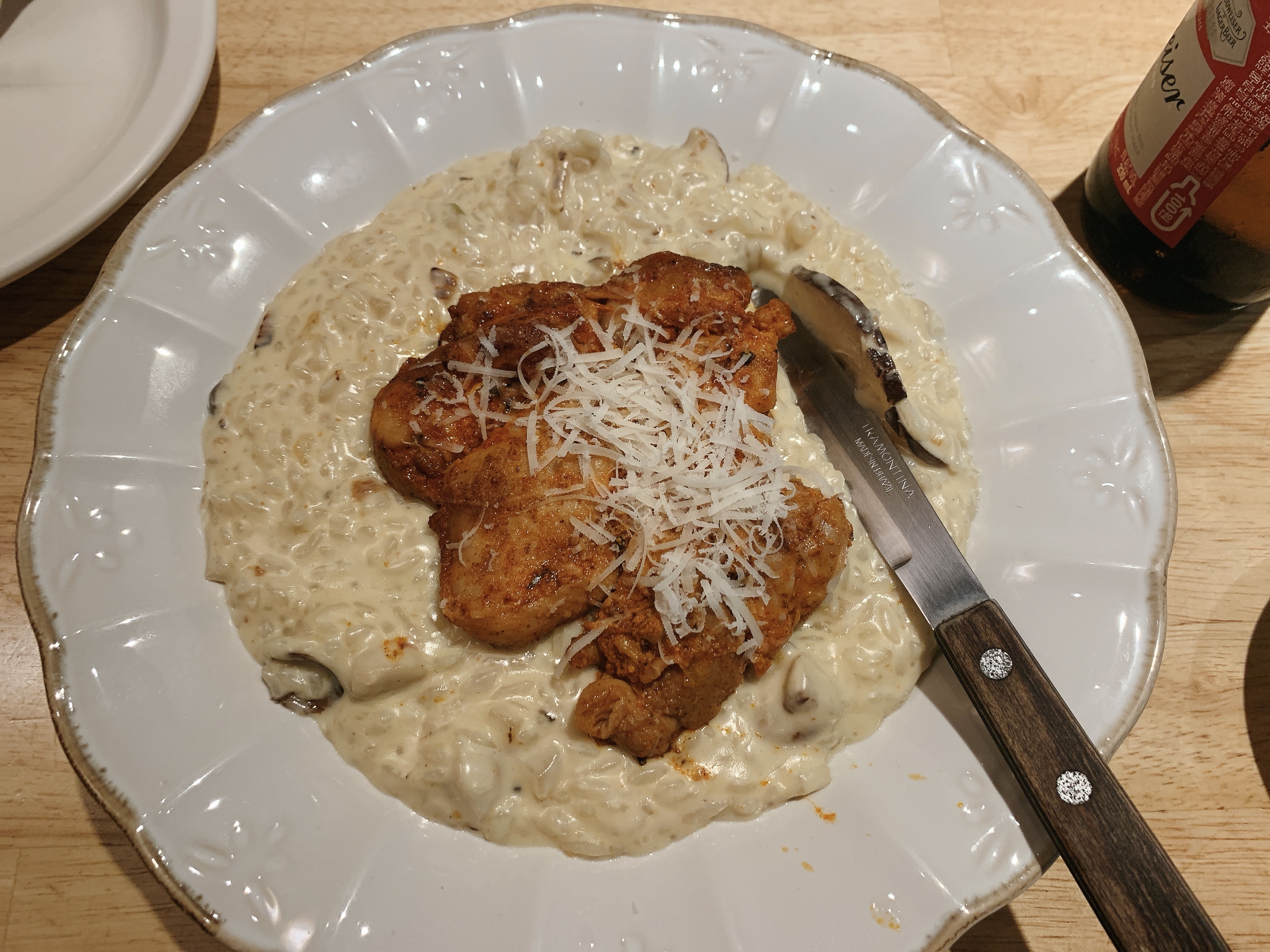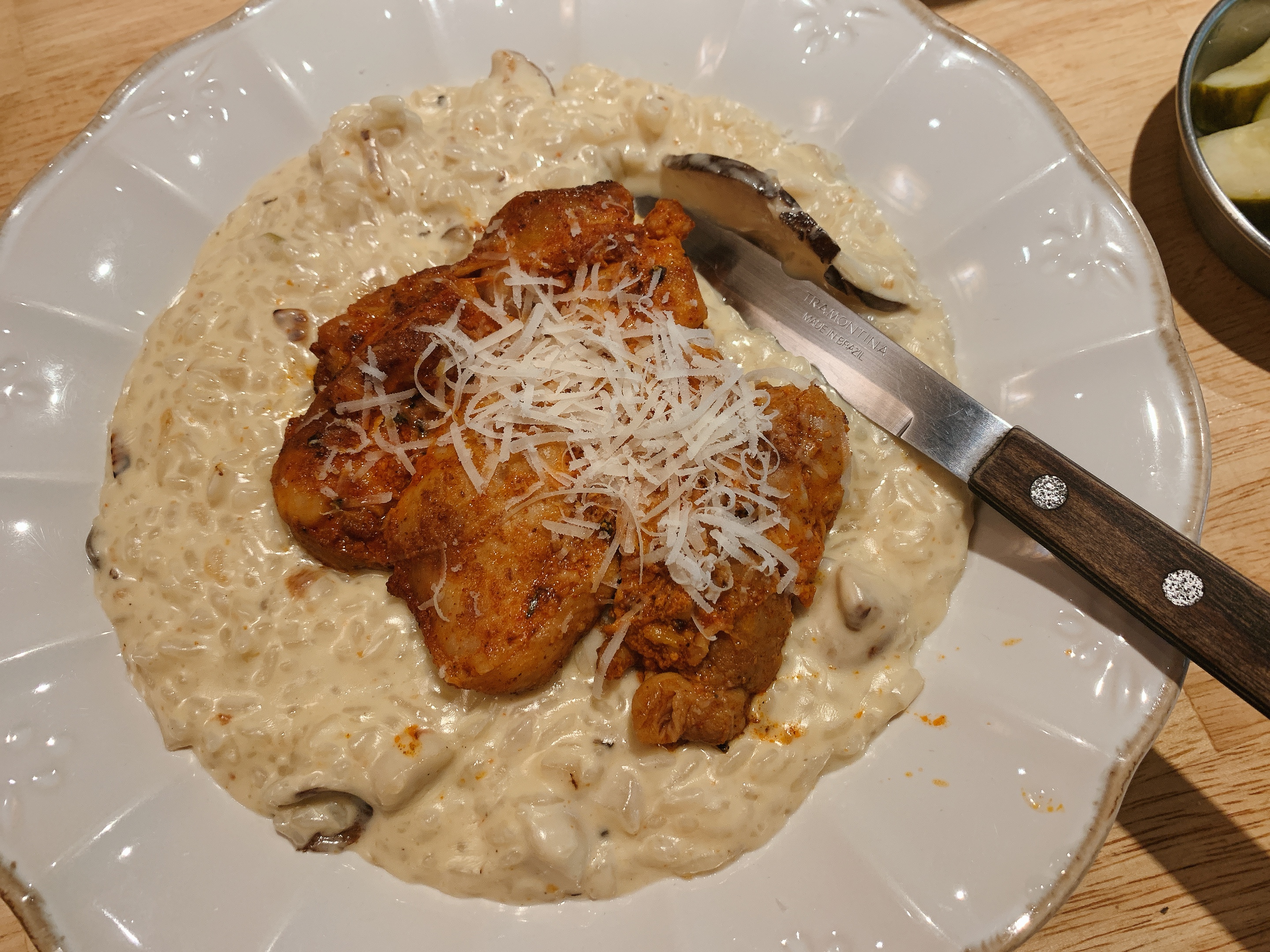 구운 닭다리살을 올린 매콤한 크림 리조또