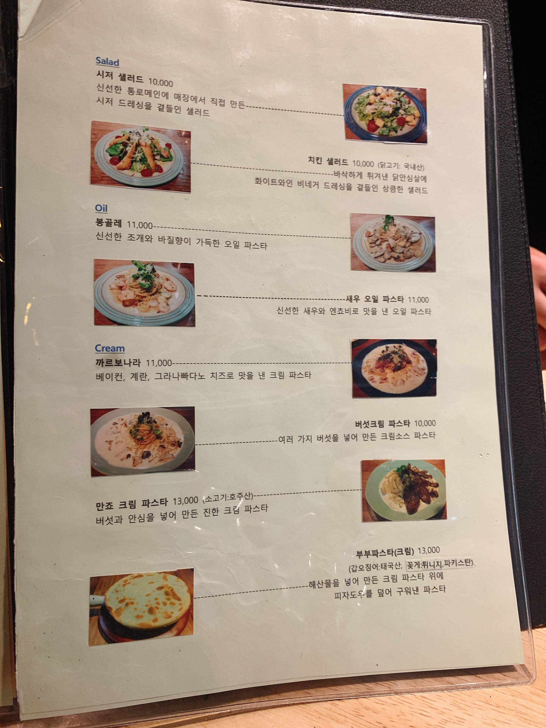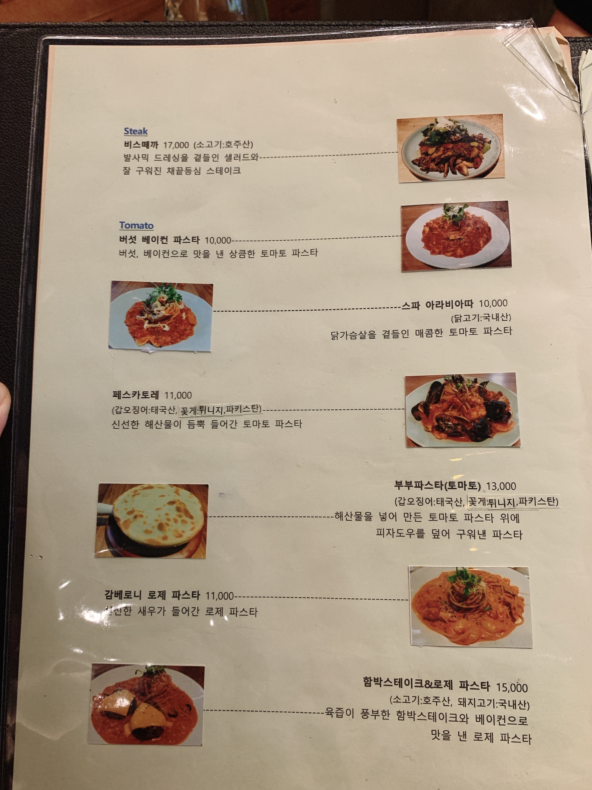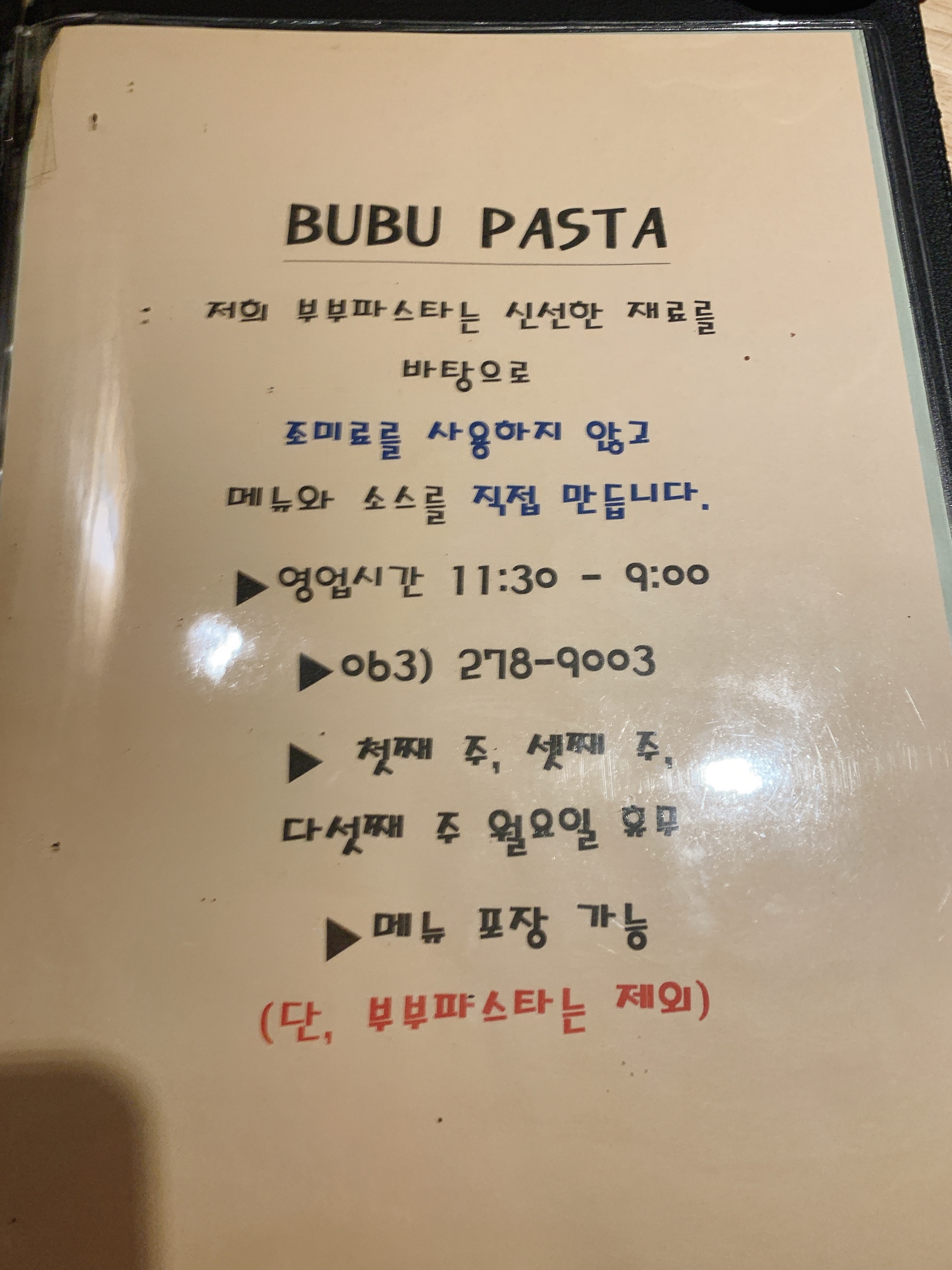 부부파스타의 메뉴이다!