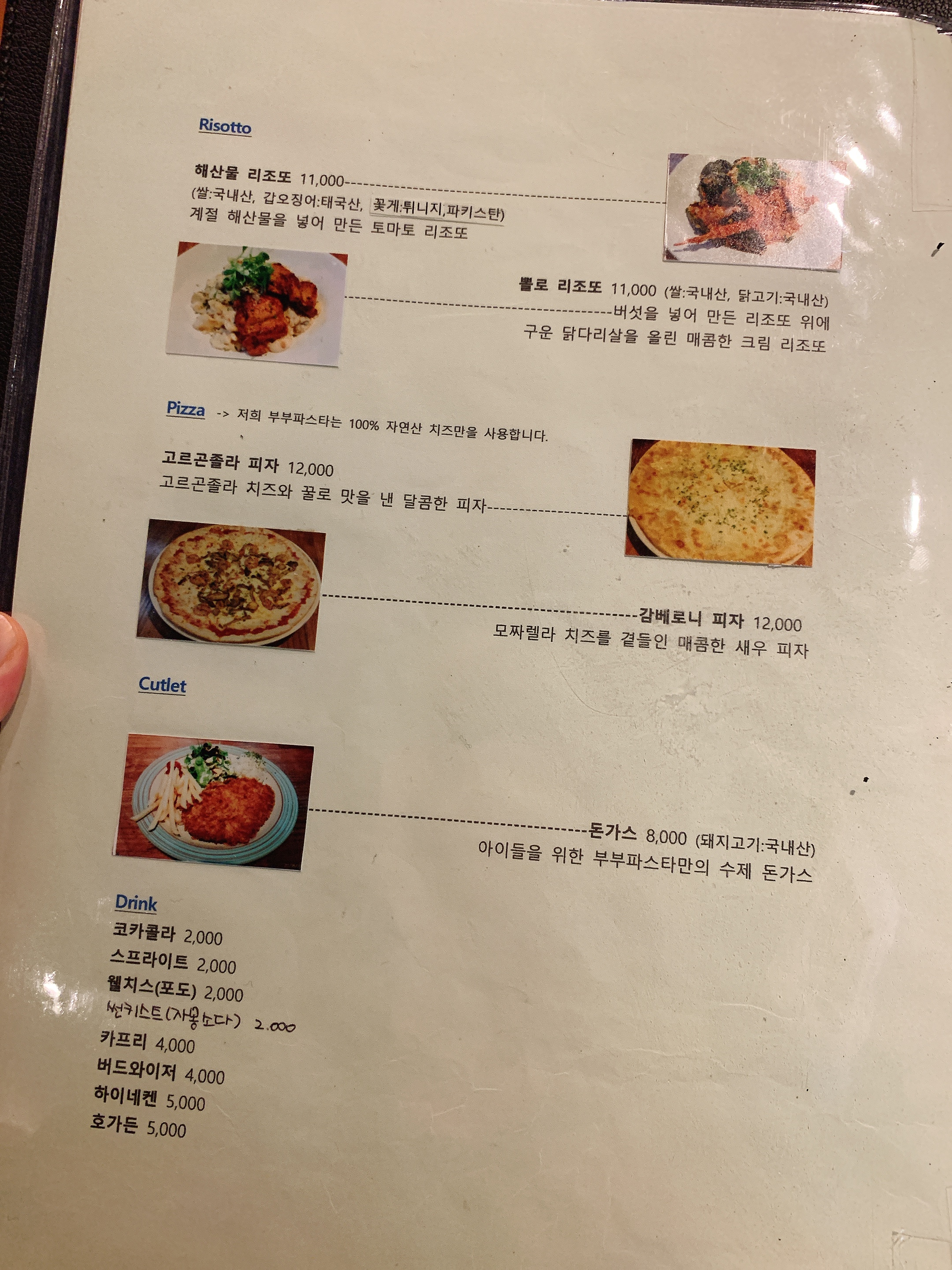 감베로니 피자와 뽈로 리조또 중에서