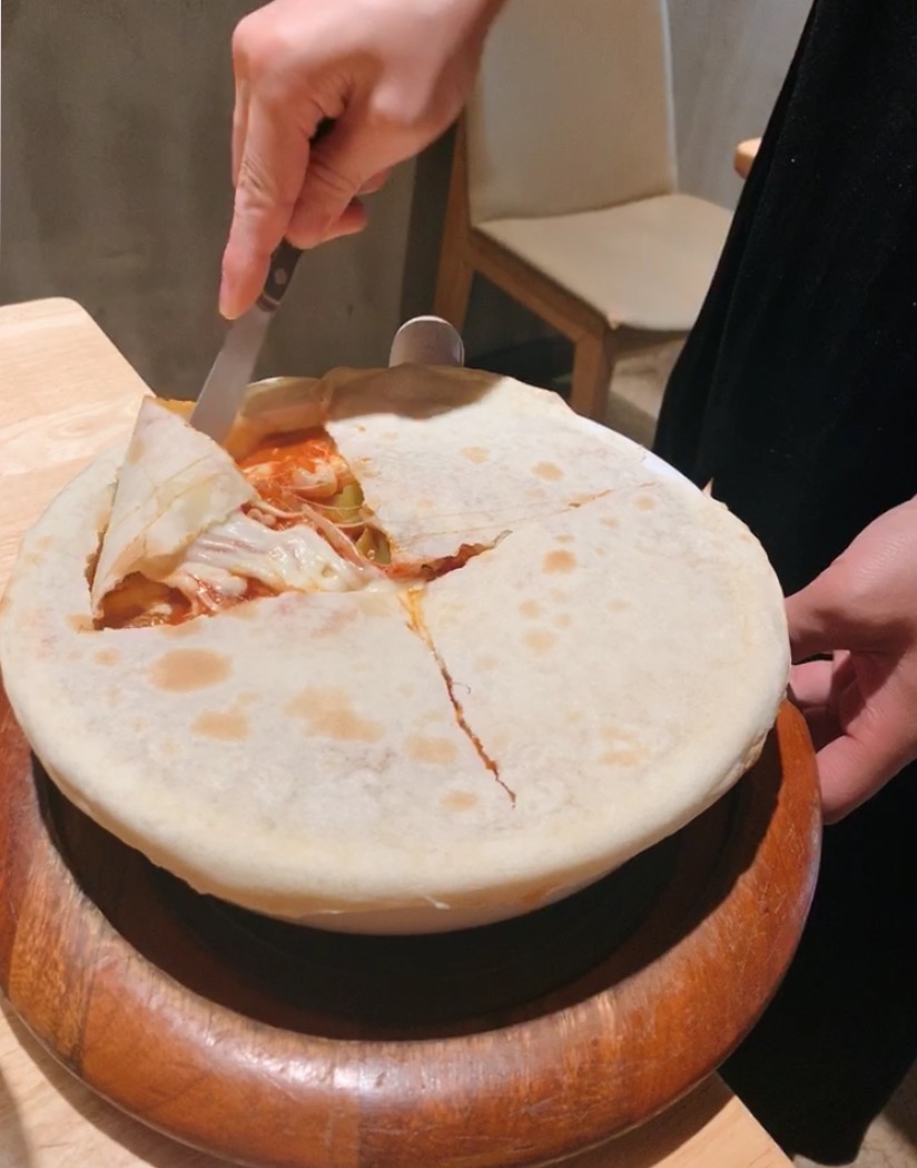 위에 또띠아가 덮여있고